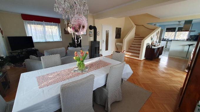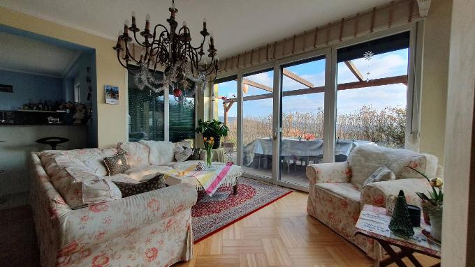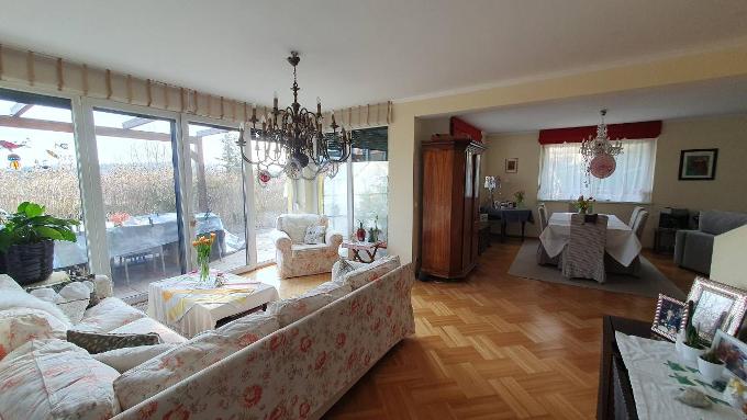 Auf rund 180 m² Wohnfläche bietet es ein großzügiges Raumkonzept: ein heller Wohn- und Essbereich mit Zugang zur Terrasse, gemütlicher Wintergarten, mehrere Schlafzimmer sowie ein modernes Badezimmer. Ein wohnlich ausgebauter Keller schafft zusätzlichen Platz für Hobbys oder Gäste.